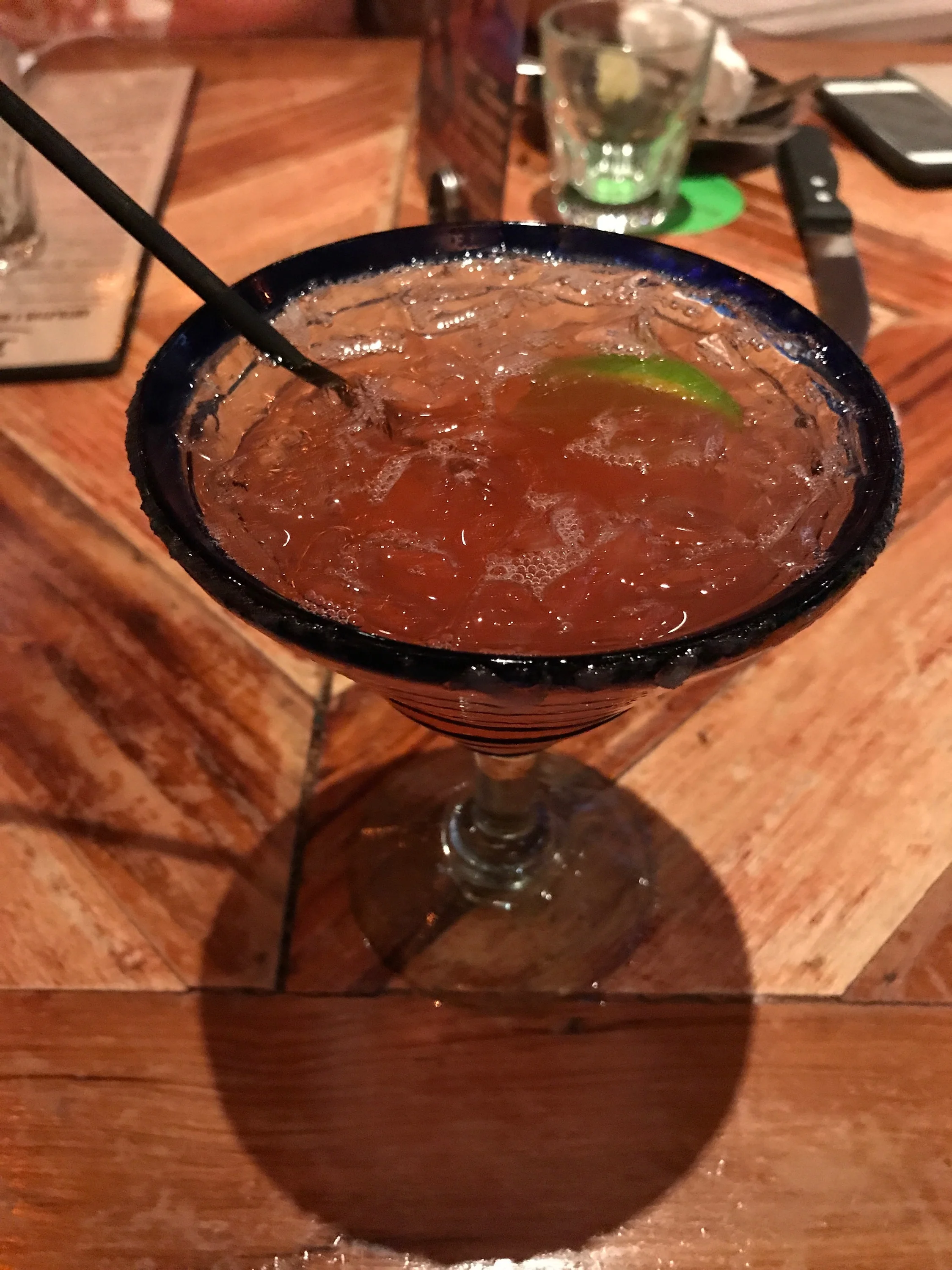 After months of walking by and wondering, I finally got to visit Rocco's Tacos & Tequila Bar! Located on Adams Street in Downtown Brooklyn, Rocco's is a fun Mexican restaurant that will set your soul on flames. The atmosphere is very cool. What drew my attention was the decor add the artwork located all around the restaurant. As my friends and I got sat, I noticed there's a huge skull on one of the walls. There's also a lot of paintings that add to the rustic aspect of the restaurant. I did notice what seems like a nod to the Day of the Dead tradition, with what looks like sugar skulls and masks located around the restaurant.