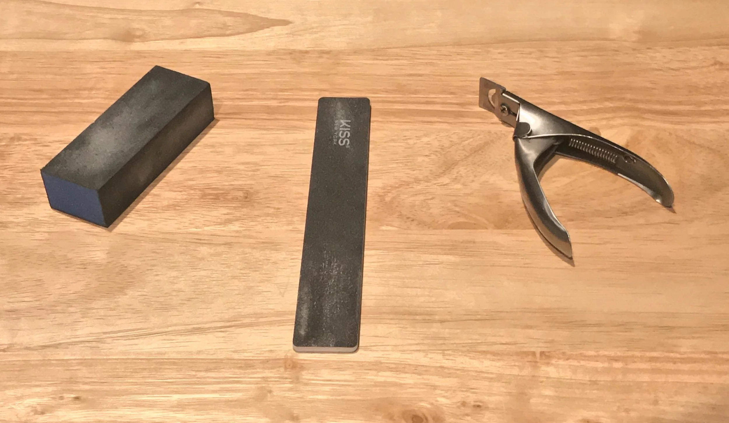 Now since I don’t have the fancy equipment that I usually see at the nail shop, I had to go with the traditional buffer, nail file and I found this nail clip.
